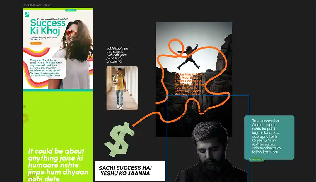 Success Ki Khoj is a website for young adults in India, exploring and challenging the cultural ideas of success. Users interact with articles and are directed towards a chat.successkikhoj.com
